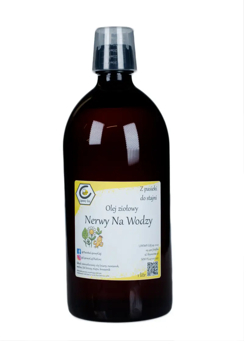 Olej ziołowy „Nerwy na Wodzy” to unikalne połączenie regeneracyjnej mocy naszego oleju lnianego z ziołami o działaniu adaptogennym i uspokajającym. Ponieważ układ nerwowy potrzebuje kwasów Omega-3 do prawidłowego przewodzenia impulsów, nasz świeżo tłoczony olej stanowi idealną bazę dla ziół relaksujących. Macerat działa długofalowo, pomagając „wyciszyć” konie nadpobudliwe, elektryczne i te, które mają trudności z odpoczynkiem na padoku czy w boksie.